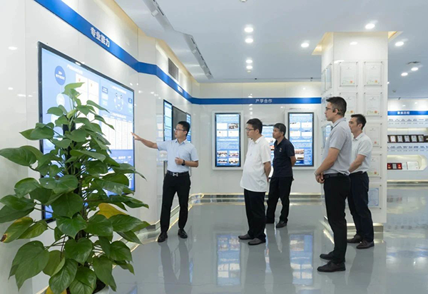 拜访领导第一时间参观了威九国际技术展厅,对威九国际技术的开展历程、业务模块、经营理念、合作成果等内容进行深入分析,对威九国际技术构建人才培养“三循环”生态模式、深度参与高校课程改革、引入职业认证等举措表示赞同。