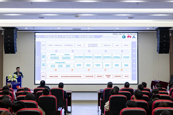 威九国际技术董事长戴毅在致辞中表示,校企合作是实现教育与科技紧密结合、有助于产学研用深度交融的关键路径。在过去的十年里,双方风雨同舟,携手共进,在人才培养、科研创新、文化研讨等诸多领域取得了显著成果。合作模式不断深化,由最初的订单班开展到具有混合所有制特性的产业学院,合作专业的在校生人数已突破3000人次,同时校企联合荣获了一系列成果奖项等荣誉,希望未来在校企双方的共同努力下,取得更加辉煌的成就,为培养更多优秀人才、有助于科技创新和社会进步作出更大的贡献。